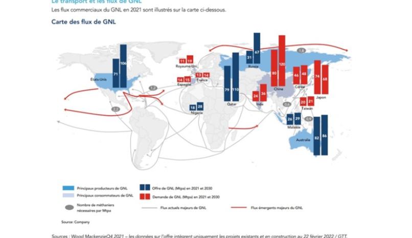 Depuis la guerre en Ukraine et des évènements tels que les coupures d’approvisionnement de gaz Russe par les gazoducs Nord Stream 1 et 2, l'approvisionnement par bateau s’envole. Le Qatar et l’Algérie fournissent donc une bonne partie de l’Europe; Les Etats Unis et l’Australie ont renforcé leur capacité de production. Leader européen des ports méthaniers avec 4 ports et un cinquième en construction, la France redistribue le gaz au reste de l’Europe.